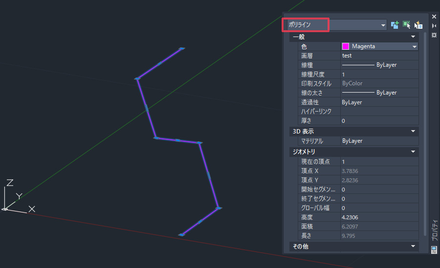 次に、LWポリラインを3D回転した状態でも試してみます。
